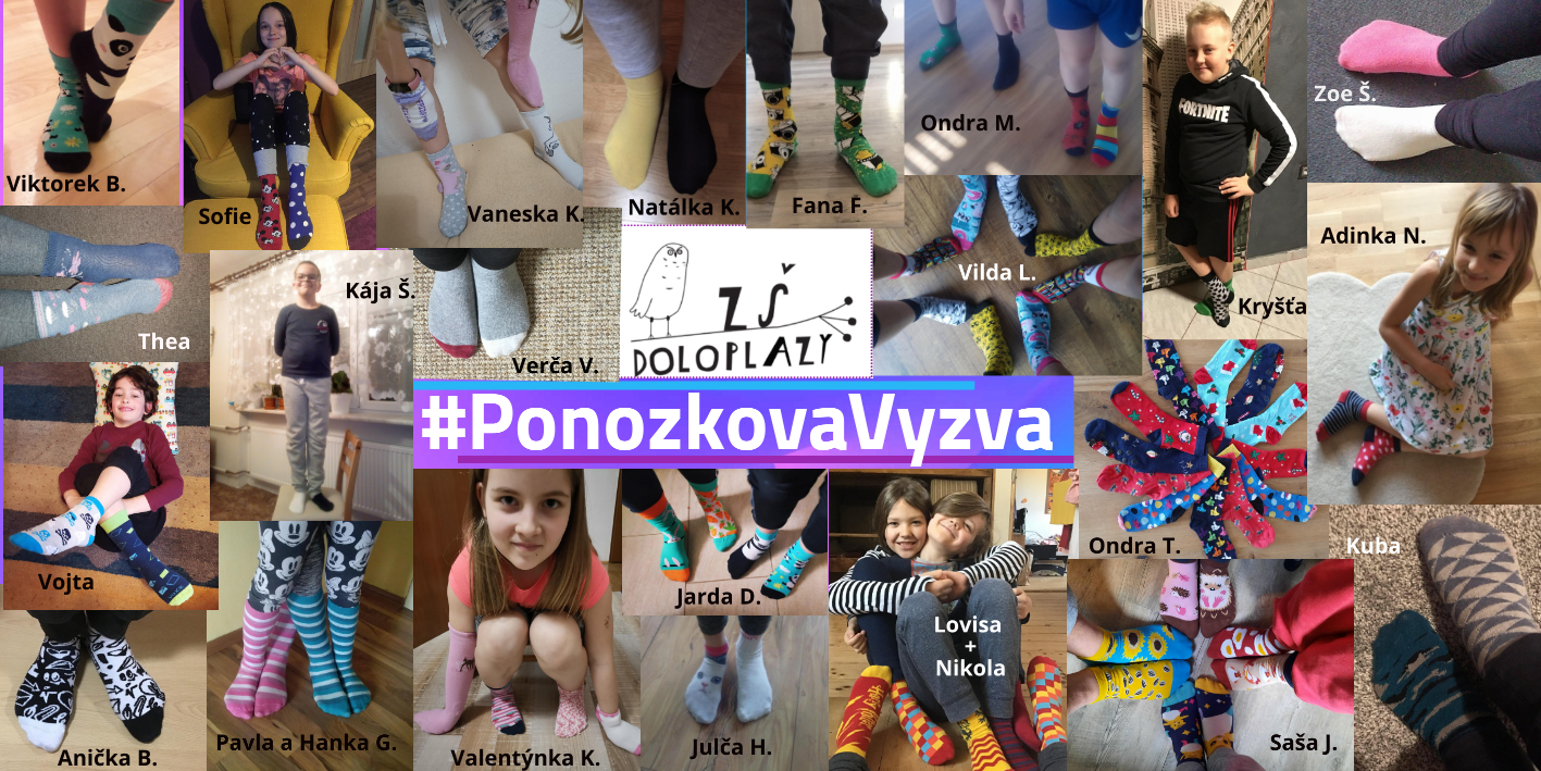 Dnes je Světový den Downova syndromu a naše škola se zapojila do projektu #ponozkovavyzva od #dědoles s cílem zvýšit informovanost o tomto syndromu právě tím, že se vyfotíme v různobarevných ponožkách.